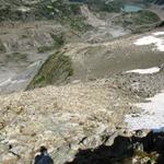 gut ersichtlich der Weg zwischen dem kleinen Grat und der Moräne Datum 11.04.2013