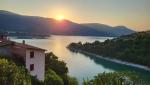 wir überqueren den Lago del Turano. Vor uns das heutige Ziel, das Hügeldorf Castel die Tora Datum 18.11.2025