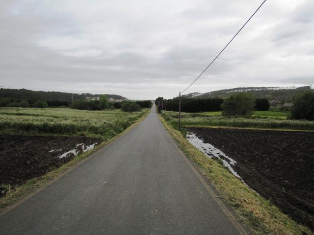 auf dem Weg nach Castromiñan. Wir laufen auf der Strasse. Keine Wegmarkierungen mehr vorhanden Datum 27.10.2013