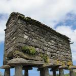zwischen 2 hórreos hindurch, treffen wir im kleinen Dorf Denle de Duio ein Datum 27.10.2013