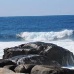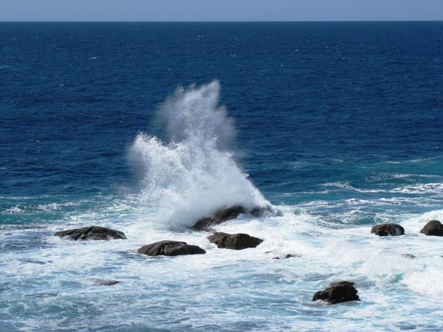 links von uns krachen die Wellen an die felsige Küste Datum 27.10.2013