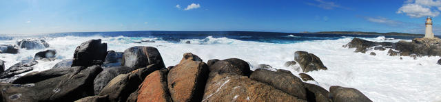 wunderschönes Breitbildfoto mit Leuchtturm, aufgenommen vor der Kirche mit Blick auf's Meer Datum 25.11.2016