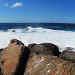 eine Welle nach der anderen rollt schäumend an die felsige Küste Datum 27.10.2013