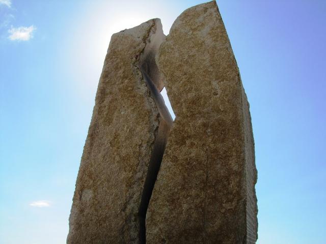 die moderne Steinskulptur direkt neben der Kirche Datum 28.10.2013