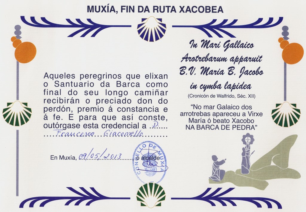 Franco holt sich die Pilgerurkunde "Muxiana" Datum 27.10.2013