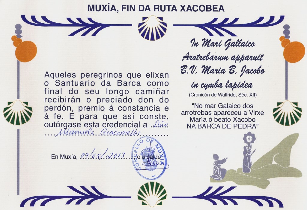 Manuela's Pilgerurkunde "Muxiana" Datum 25.11.2016