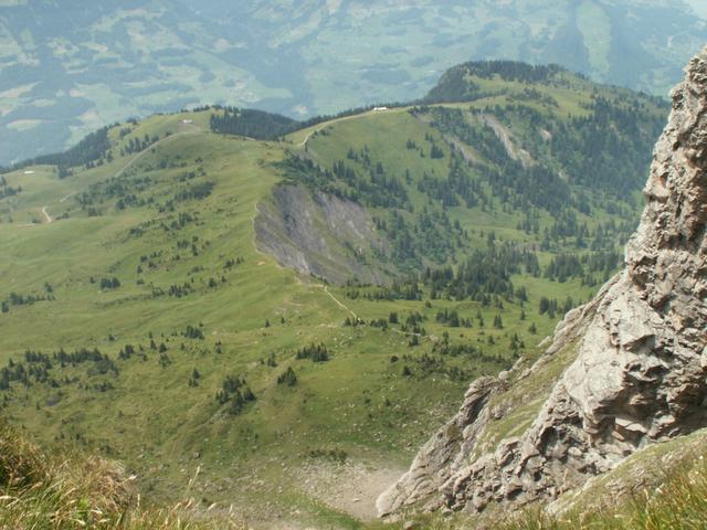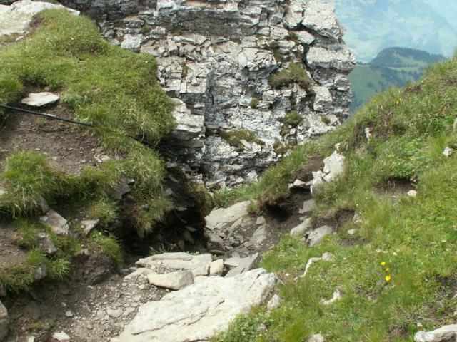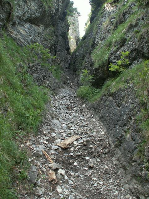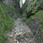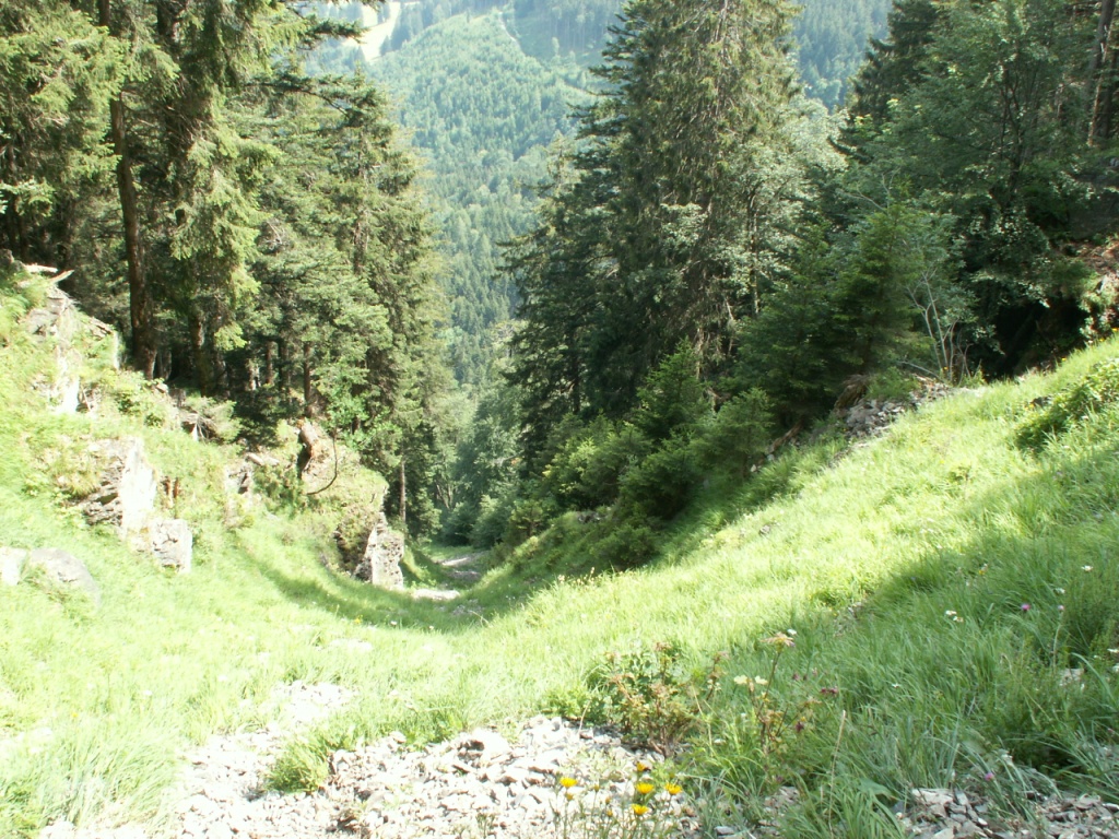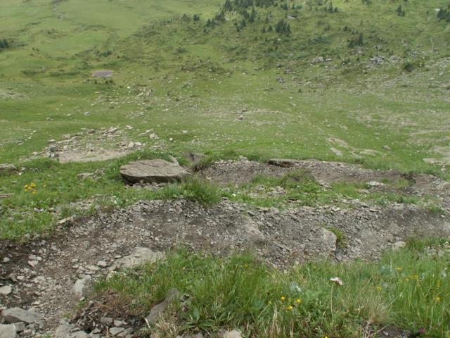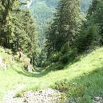hier beginnen die Runsen und Muren ihr zerstörerisches Werk