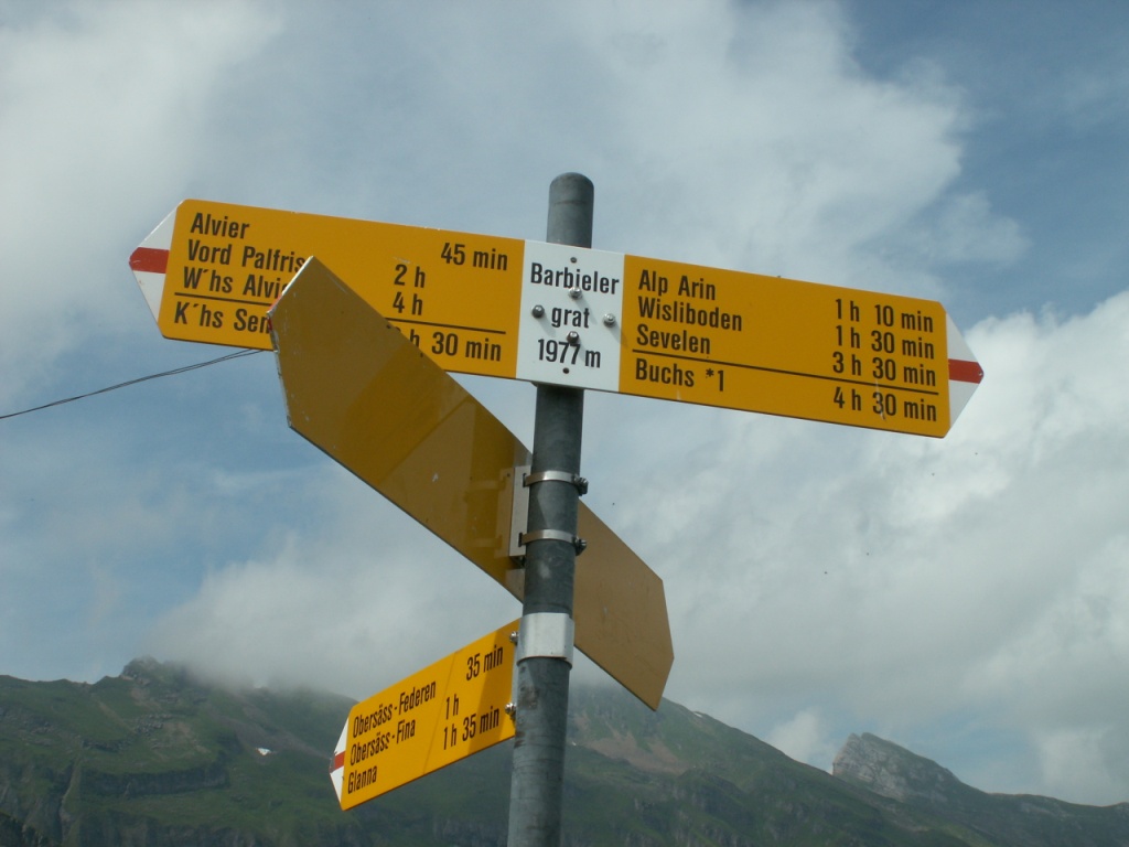 Wegweiser Alp Labria, im Hintergrund der Girenspitz