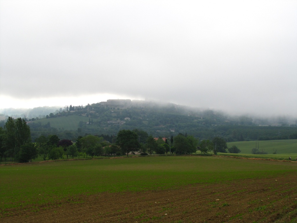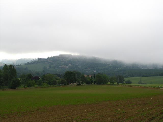 nochmals ein Blick zurück Richtung Lectoure und siehe da, Lectoure liegt vollkommen im Nebel Datum 23.06.2011