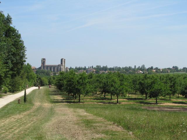 plötzlich taucht die mächtige Stiftskirche von La Romieu auf Datum 23.06.2011