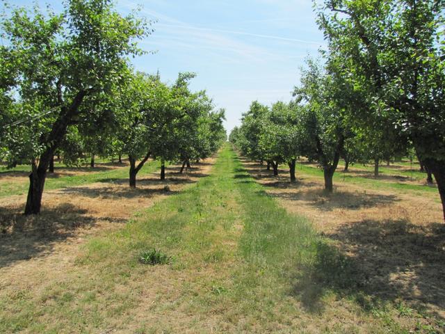 kurz vor La Romieu Obstplantagen unendlich lange Reihen Datum 22.06.2011