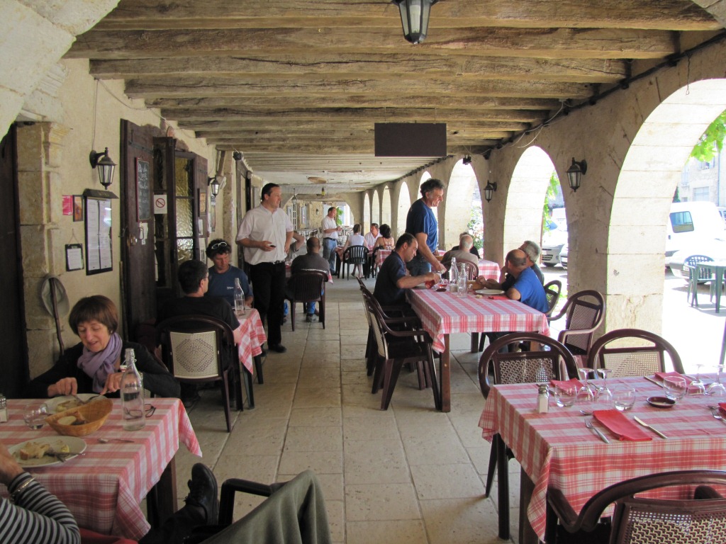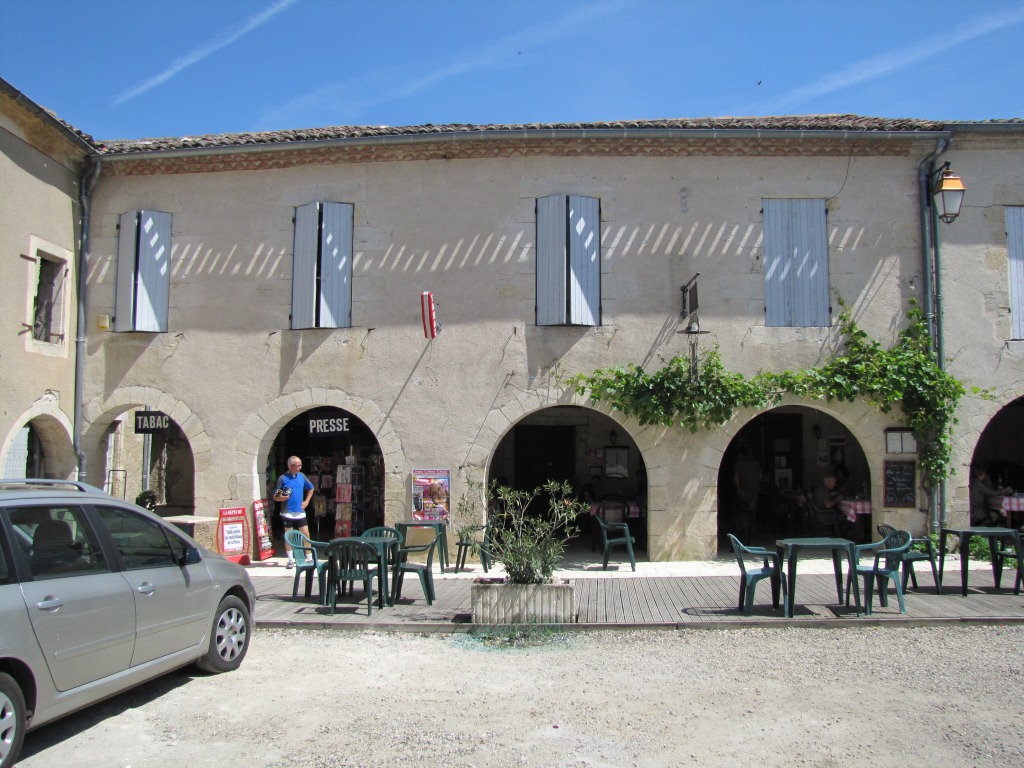 der Hauptplatz von La Romieu mit seinen schönen Arkaden Datum 22.06.2011