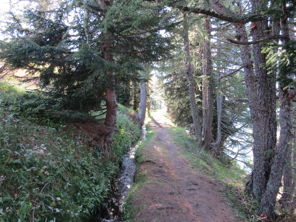 rechtshaltend durchlaufen wir nun unterhalb der Wasenalp einen schönen Lärchenwald