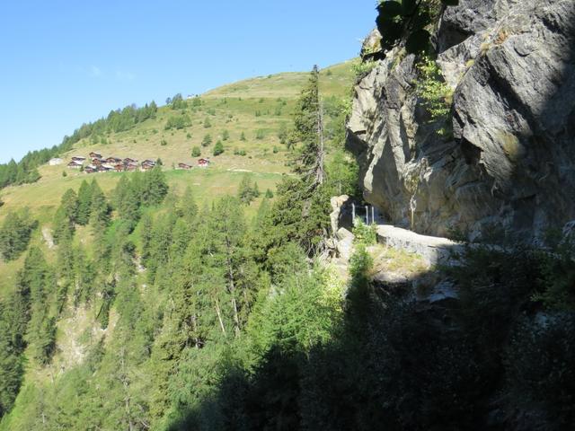 wir erreichen eine Weggabelung, links geht es zur Saflischmatte. Wir wandern weiter geradeaus