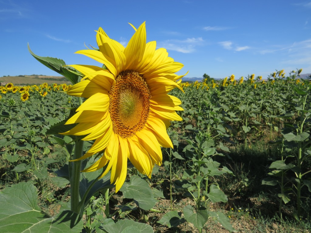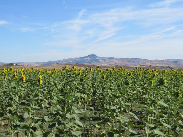 über ein Sonnenblumenfeld erspähen wir, wie sollte es anders sein, Radicofani