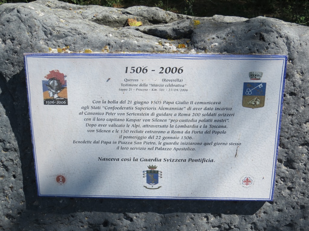 Gedenktafel von der Schweizergarde, die wegen dem 500 jährigem Jubiläum von der Schweiz hier hindurchgelaufen sind
