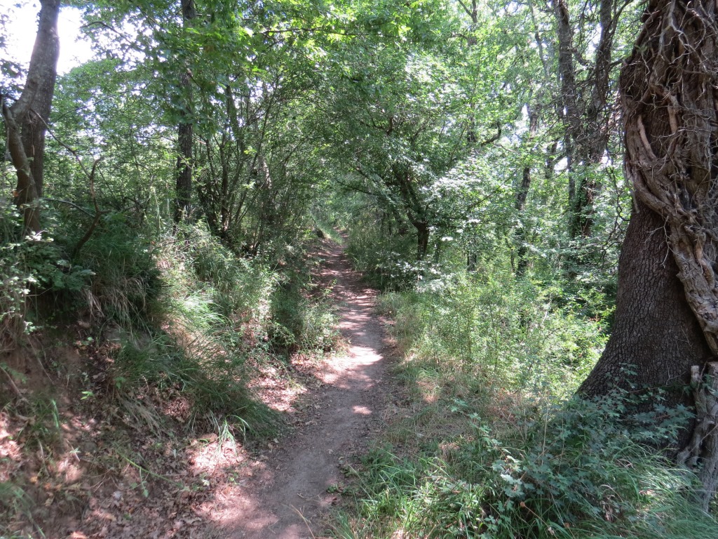 über einen Steineichenwald geht es weiterhin abwärts. Obwohl wir im Schatten laufen, ist es unglaublich heiss Datum 01.12.2019