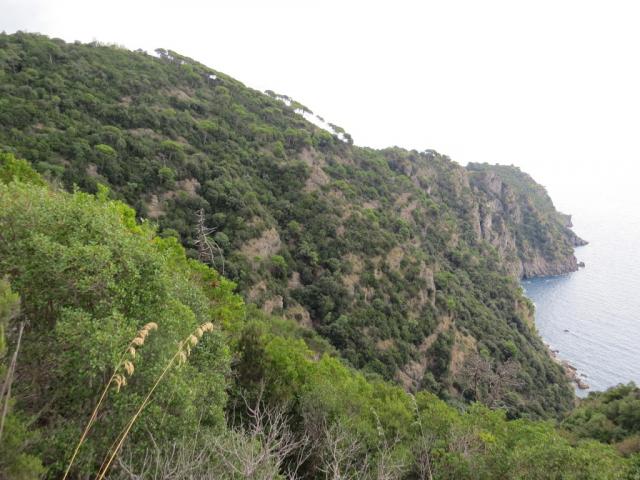 fast Senkrecht fällt hier die Bergflanke des Monte Pollone ins Meer