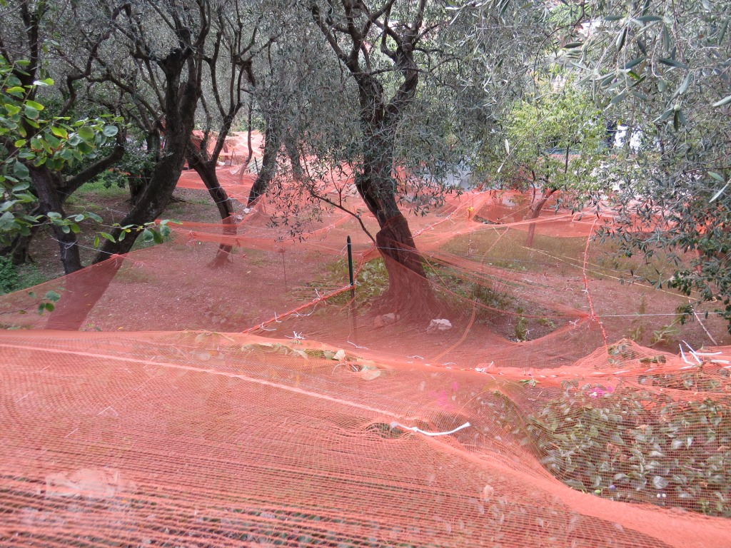 die Olivenernte steht bevor. Überall sind Netze gespannt um die Oliven einzusammeln