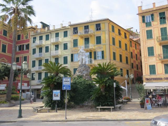 die Statue von Christoph Kolumbus aus weissem Marmor, begrüsst uns im Zentrum von Santa Margherita Ligure