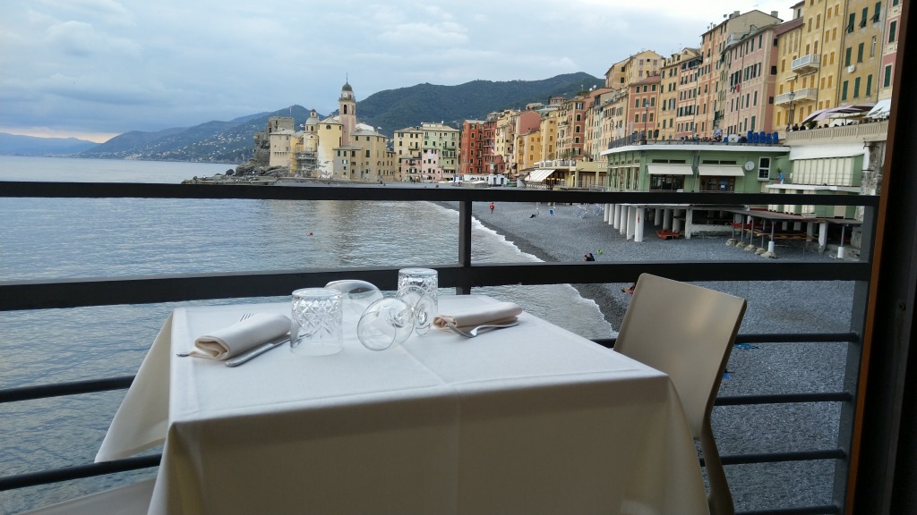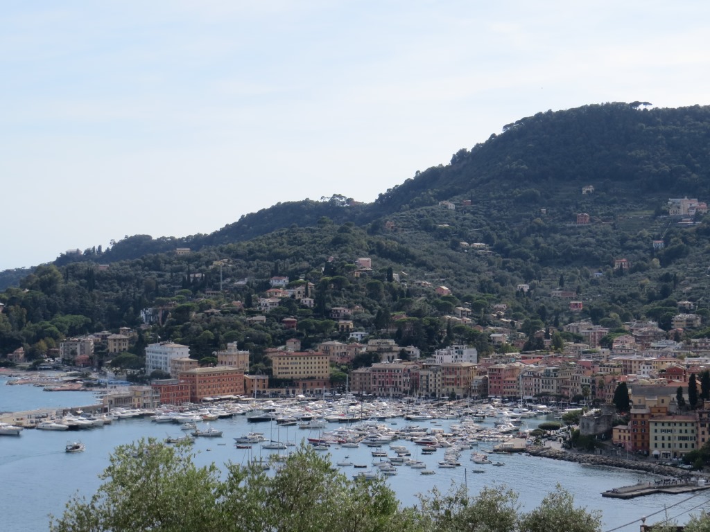 vom Kirchenvorplatz bietet sich eine sehr schöne Aussicht auf Camogli, wo wir gestartet sind