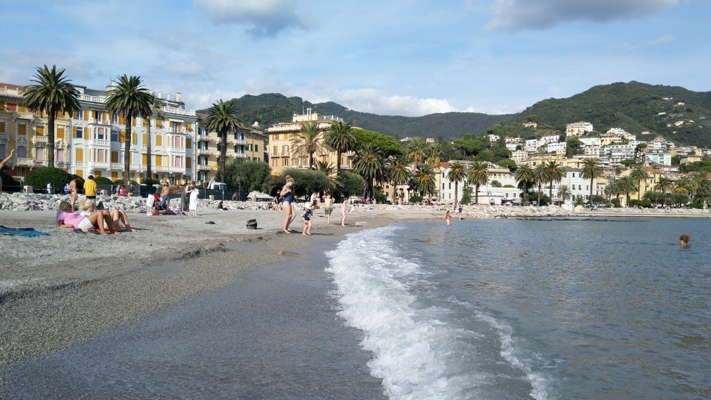 ...geht es dem Strand von Rapallo entlang, Richtung Stadtzentrum