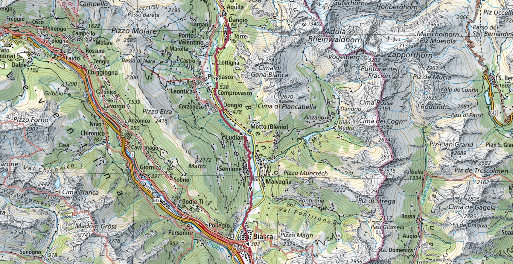 die Wegweiser werden uns auch heute sehr gut durch das Bleniotal führen