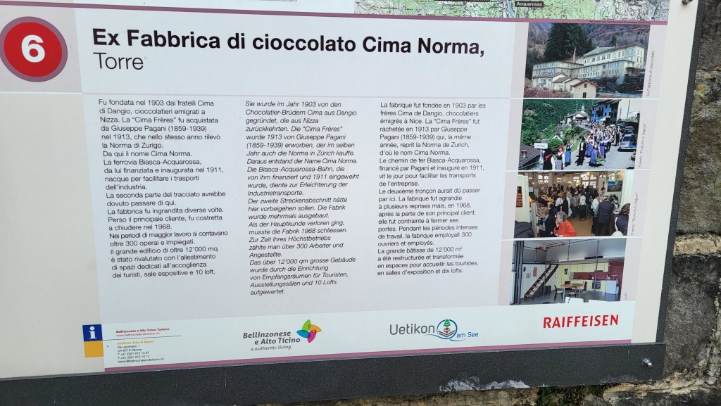 ...und erreichen die ehemalige Schokoladefabrik Cima Norma
