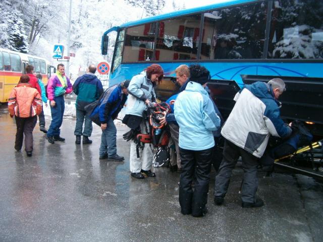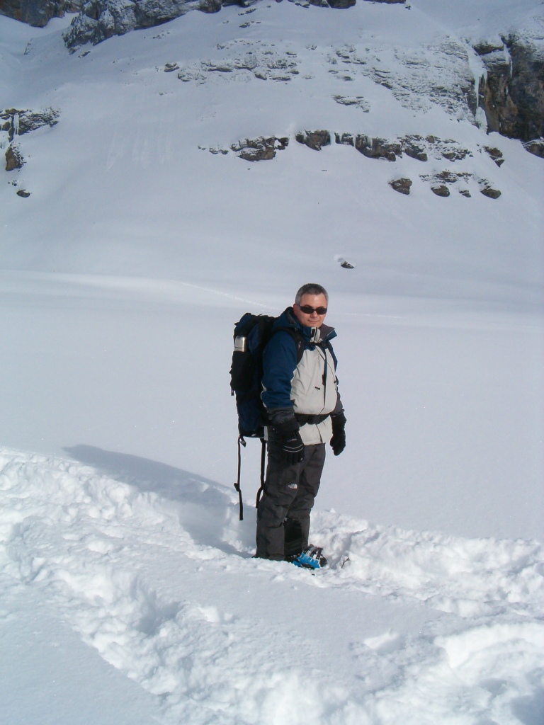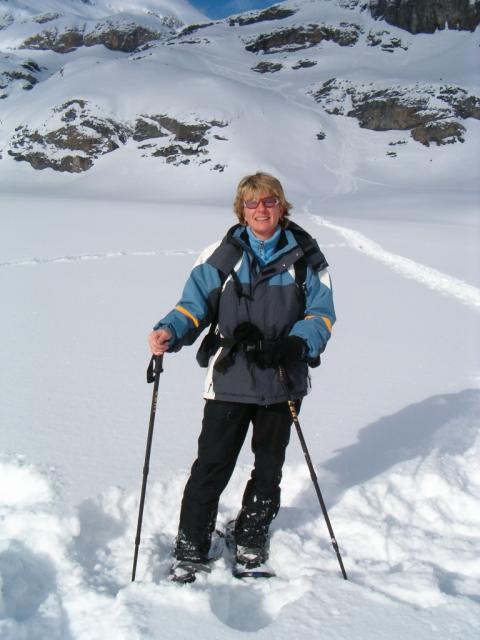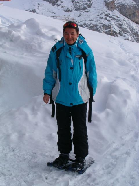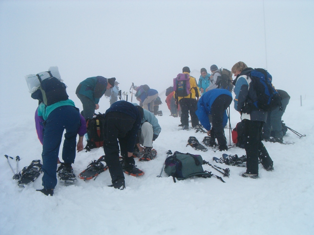 schwierig die festgefrorenen Schneeschuhen anzuziehen