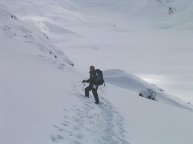 im Schneetreiben geht's Richtung Lämmerenhütte