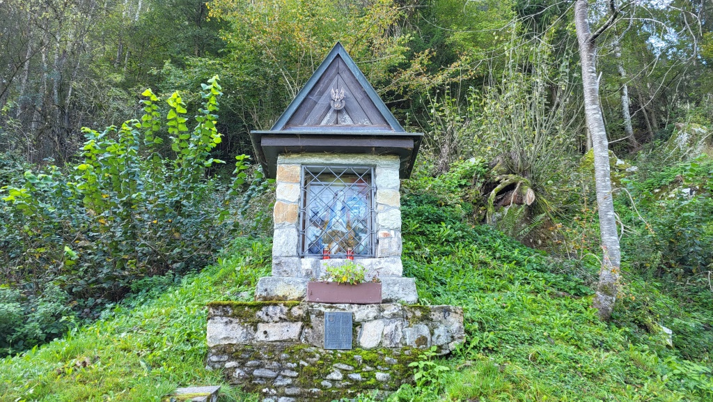 Erinnerungstafeln und ein Bildstock erinnern an die Geschichte