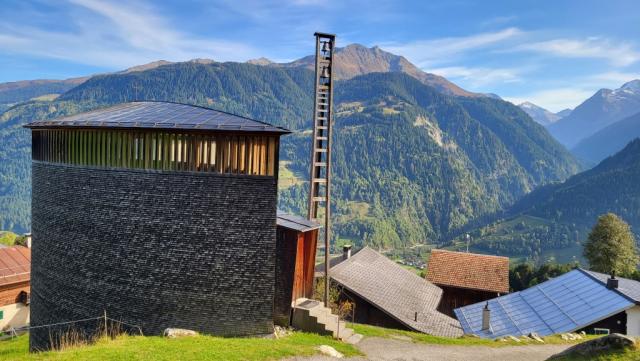 sie steht im Weiler Sogn Benedetg oberhalb des Dorfes Sumvitg