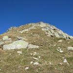 rechts unter der felsigen Gratschneide geht die Wanderung weiter, bis unter den Gipfelaufbau Datum 18.01.2012