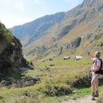 Mäusi zeigt nach oben zur Riederfurka. Dort hinauf müssen wir wieder Datum 18.01.2012