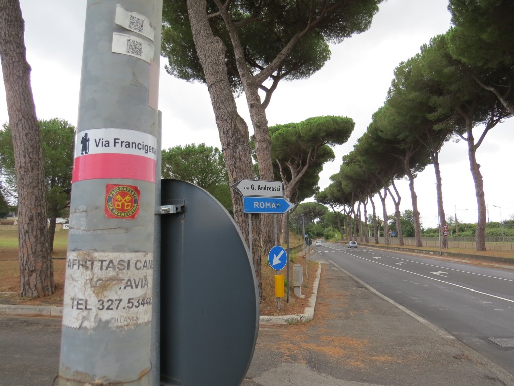 ...und laufen auf der Hauptstrasse Richtung Rom. Dieser Wegweiser wird uns das letzte mal den Weg weisen
