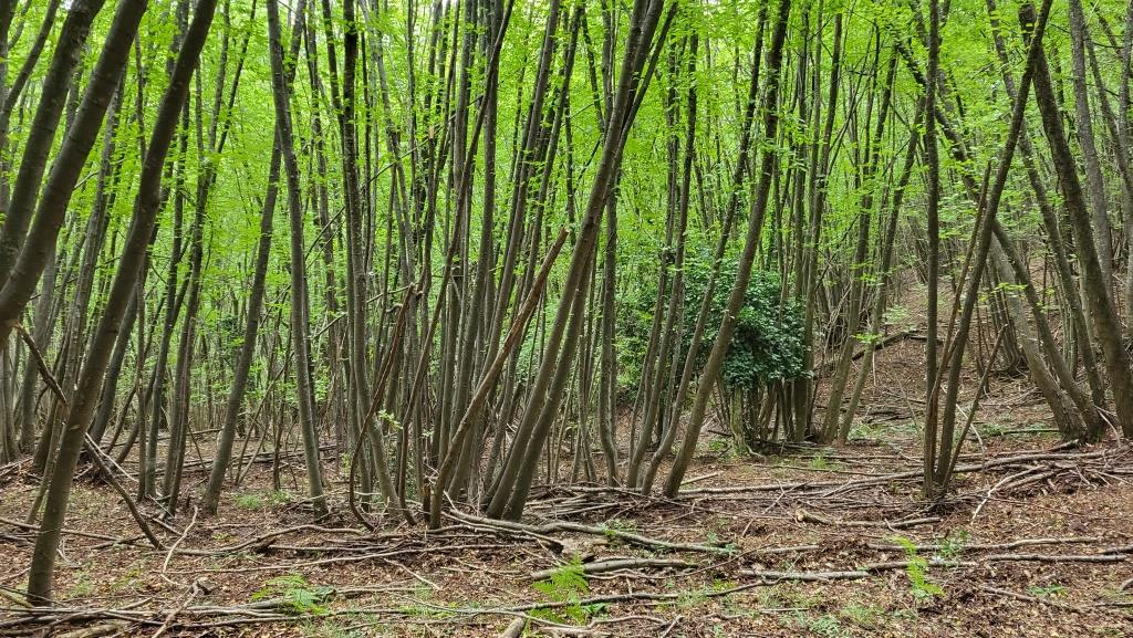 oben angekommen, führt der Weg entlang des Bergrückens durch dichten Wald, weiter Richtung Monte Mauro Datum 23.10.2024