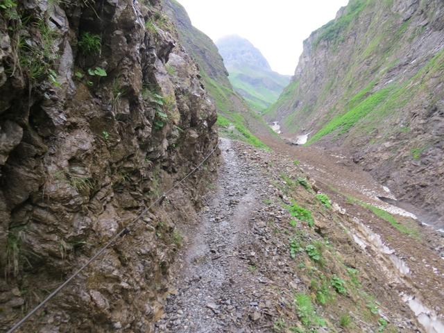 wegen dem bei Nässe rutschigen Weg, nehmen wir danken die Seilsicherung in die Hand Datum 29.07.2016