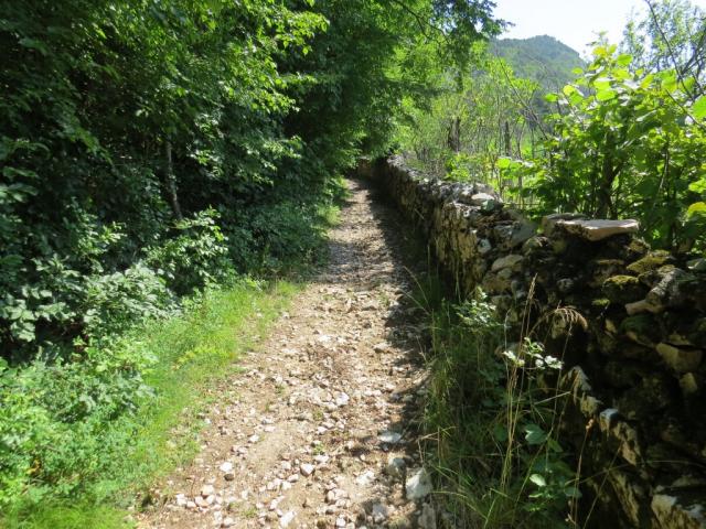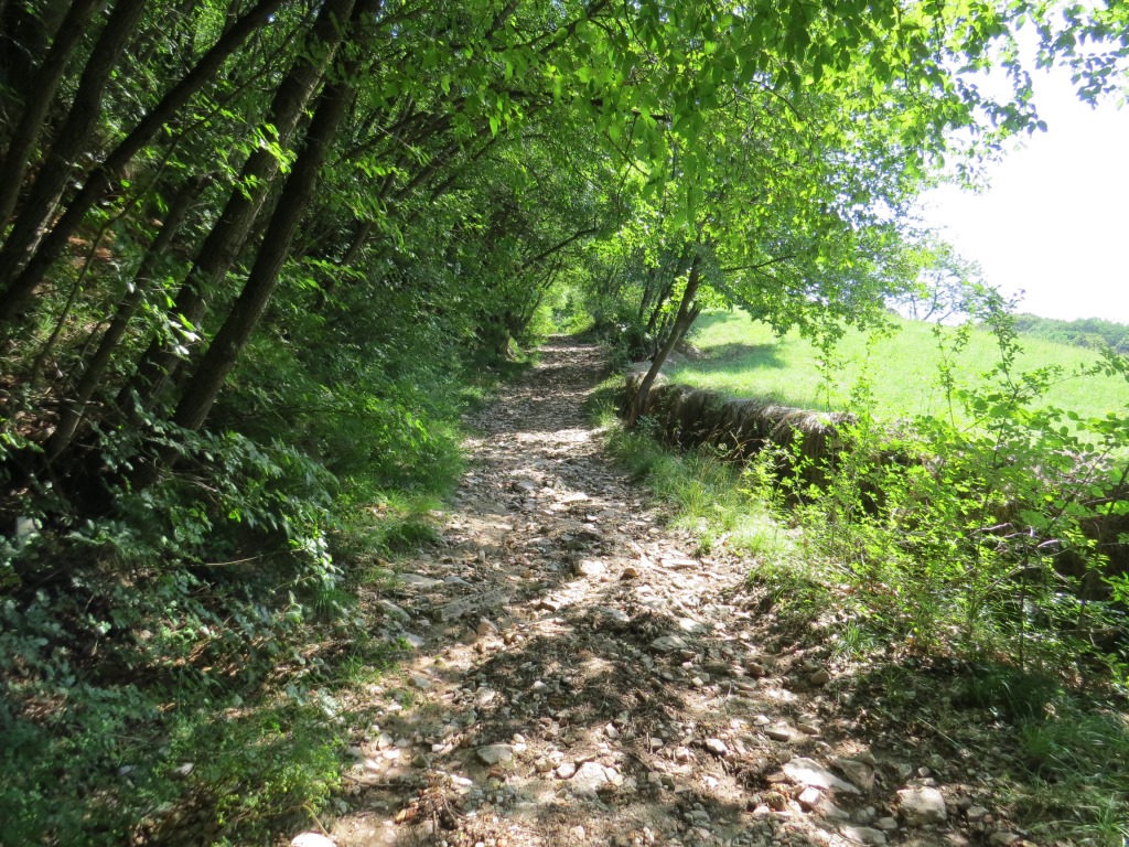 die Via Romea biegt nun in ein kleines bewaldetes Seitental hinein