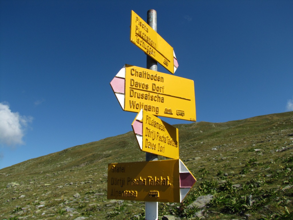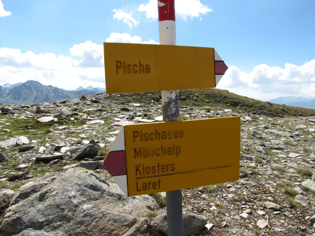 Wegweiser auf dem Pischgrat. Hier wird der Pischahorn gar nicht erwähnt! Datum 01.10.2010