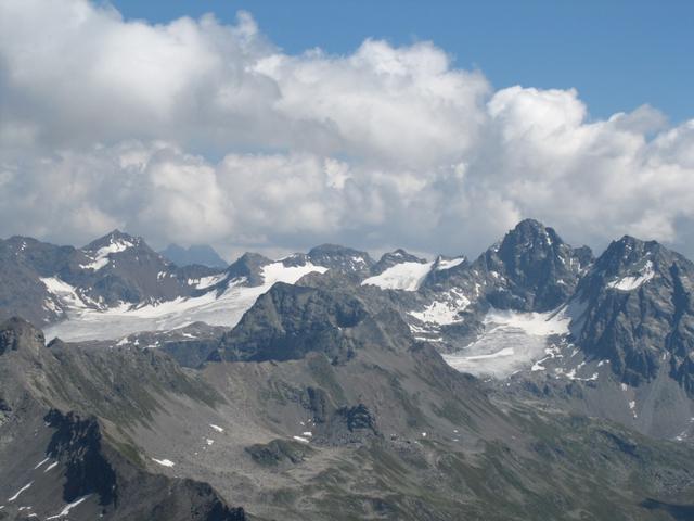links Silvrettagletscher, danach Vernela Tal, die Unghürhörner, das Süser Tal und der Piz Linard Datum 28.09.2010