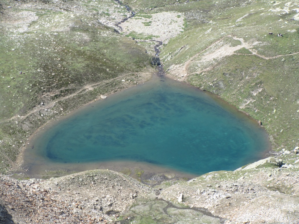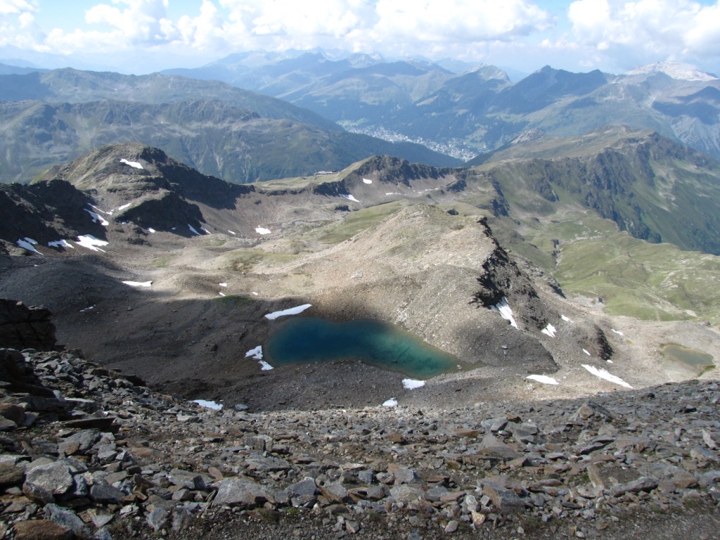 Blick runter nach Verborgen Pischa mit den schönen Bergseelein Datum 28.09.2010