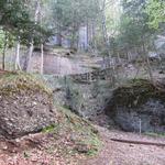 hier haben sich bei einem Felssturz drei riesige Nagelfluhbrocken ineinander verkeilt Datum 29.04.2021