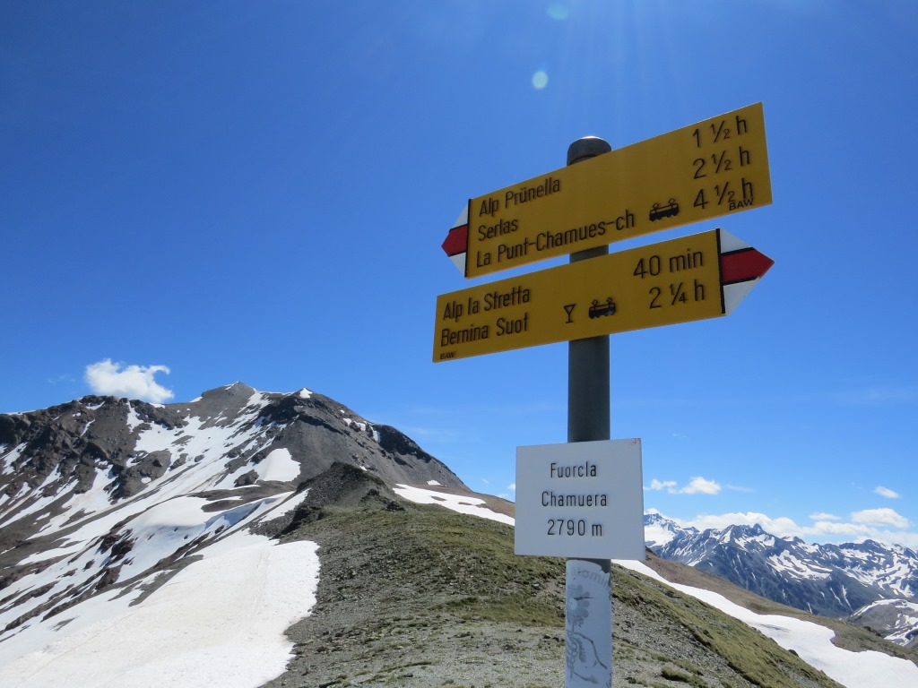 Wegweiser bei der Fuorcla Chamuera