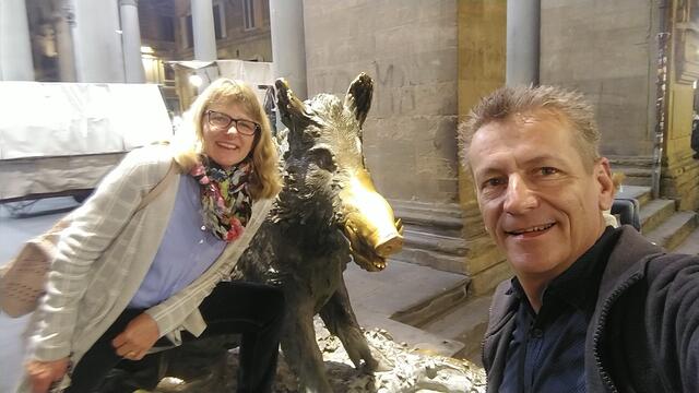 bei der Bronzestatue halten wir an, und berühren die Schnauze. Eine Legende sagt das man so wieder nach Firenze zurückkehrt Datum 12.11.2020