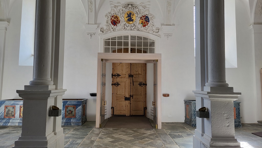 leider ist die Kapelle geschlossen, so können wir nur durch das Fenster in den schönen Innenraum schauen Datum 18.01.2024