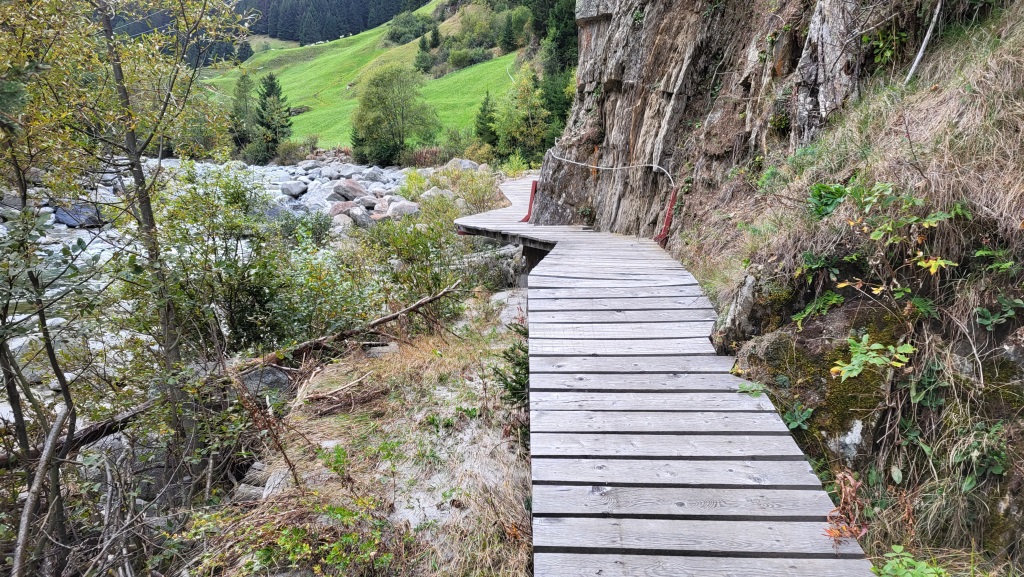 auf Holzstegen führt uns die Via Francisca am Rein da Medel entlang Datum 21.01.2024