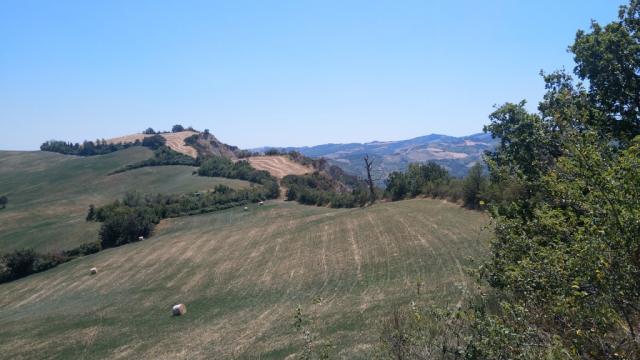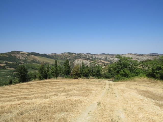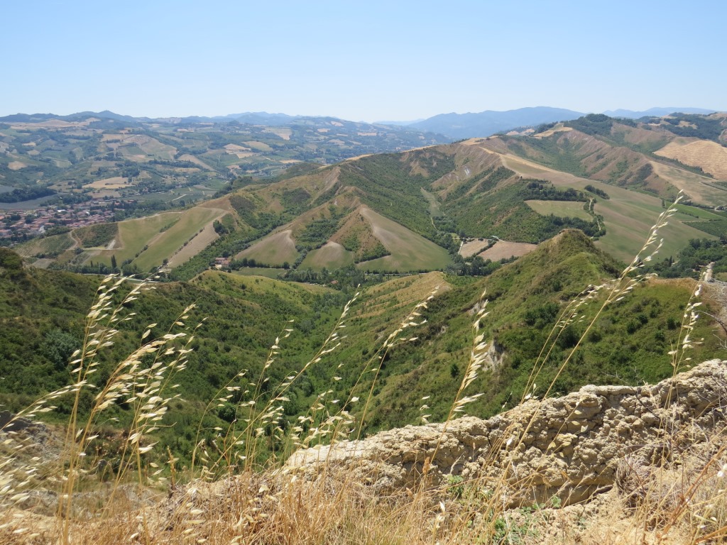 wir blicken nach San Martino in Pedriolo zurück und zu den Hügeln wo wir am Vortag abgestiegen sind