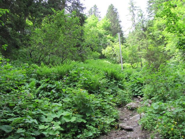 teilweise ist der Weg nicht ersichtlich. Ist aber kein Problem. Rechts ist der Spiggebach