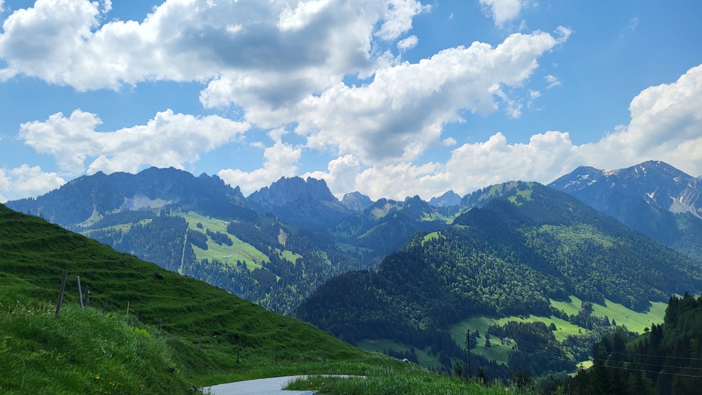der Blick zu den Gastlosen, (wo wir auch schon Wanderungen durchgeführt haben), ist sehr schön