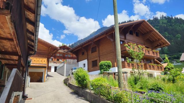 bei der Oberi Dorfallmend taucht im Tal unter uns Jaun auf